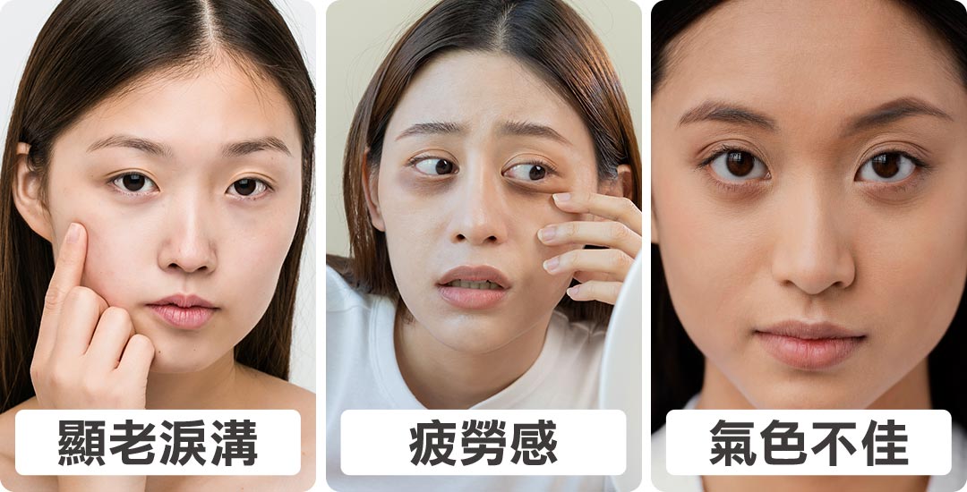 熬夜、睡眠不足會使身體長期處於疲勞狀態,導致肌膚有蒼白、暗沉、蠟黃等問題,也容易使眼周血液循環變差、以及造成眼周腫脹等情形進而造成黑眼圈。