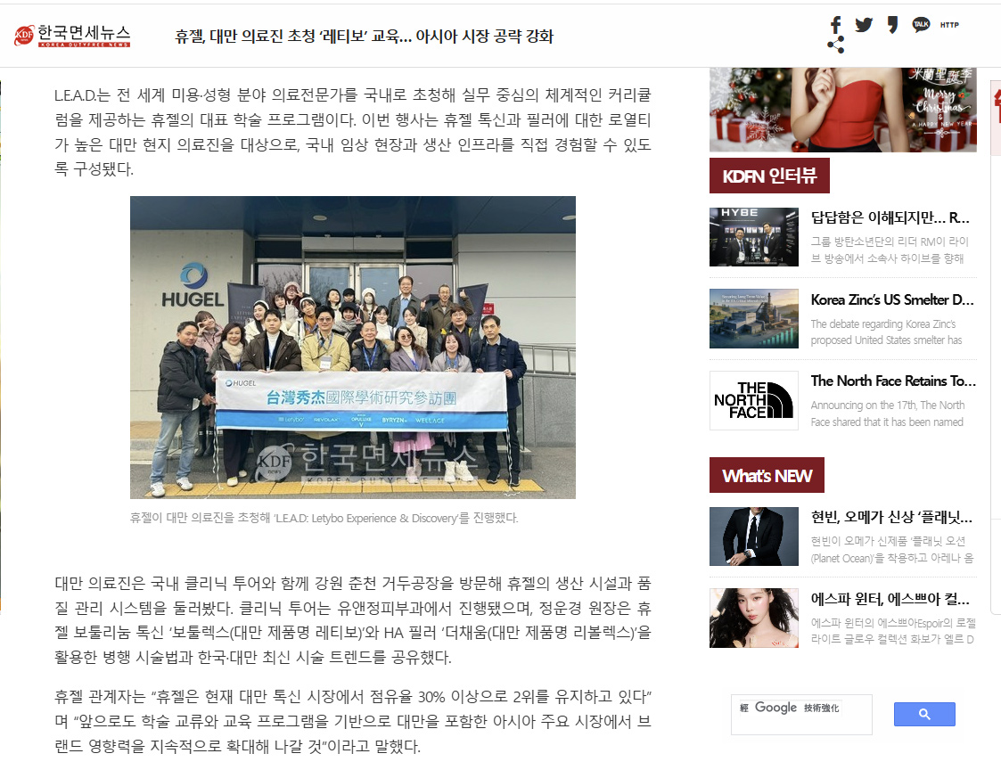 Hugel 相關人士表示:「Hugel 目前在台灣肉毒毒素市場市佔率超過 30%,穩居第二名。」並補充道:「未來也將持續以學術交流與教育計畫為基礎,進一步擴大包含台灣在內的亞洲主要市場之品牌影響力。」
