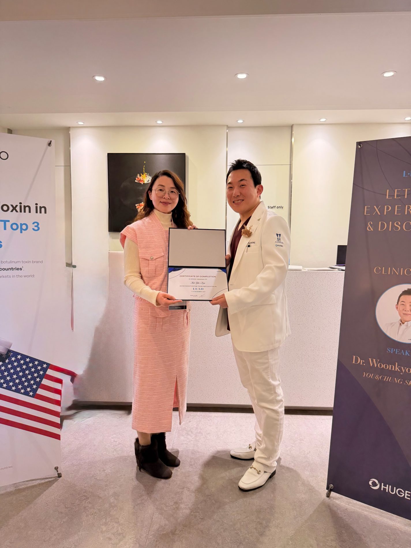 本次行程也參訪韓國當地診所「 UNJ 皮膚科」並由「鄭雲京院長」分享使用 Hugel 肉毒毒素 「Botulax(台灣產品名:Letybo)」 與 HA 玻尿酸填充劑 「The Chaeum(台灣產品名:Revolax)」 的複合式治療技巧,以及韓國與台灣最新的醫美治療趨勢。
