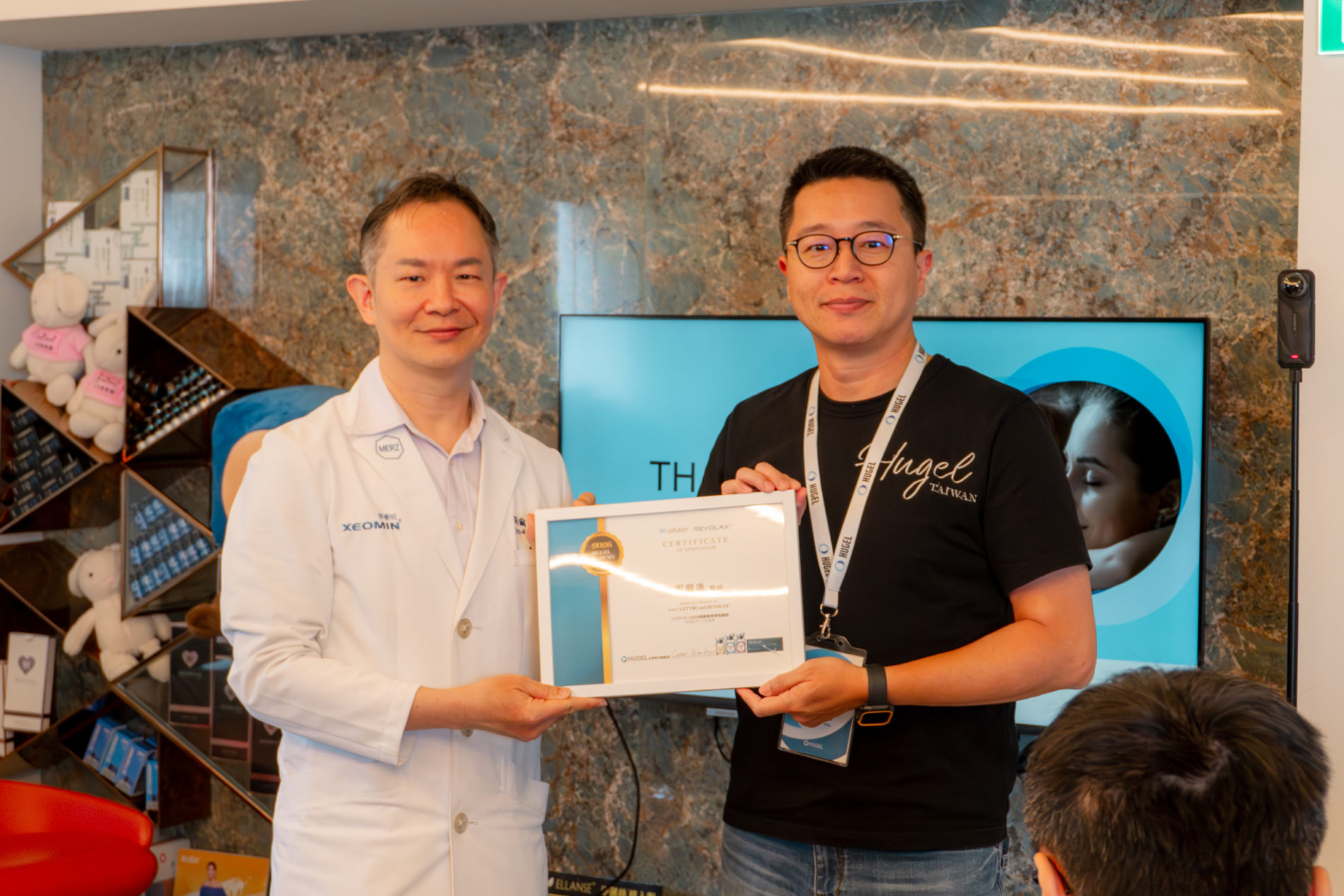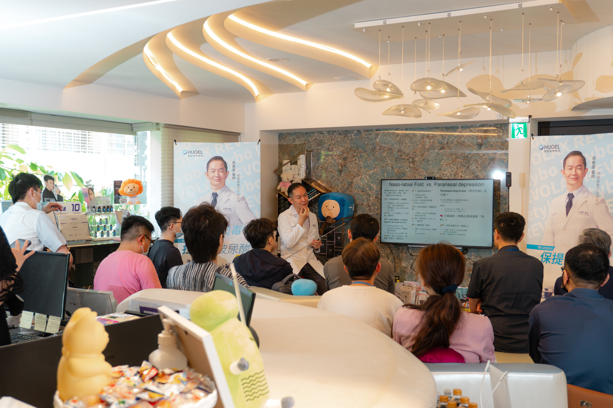 EK美學診所與HUGEL Taiwan 在本院舉辦Hugel微整形交流教育訓練,聚焦於「微整形臨床邏輯」的建立,內容涵蓋玻尿酸面雕與肉毒桿菌注射兩大常見療程。